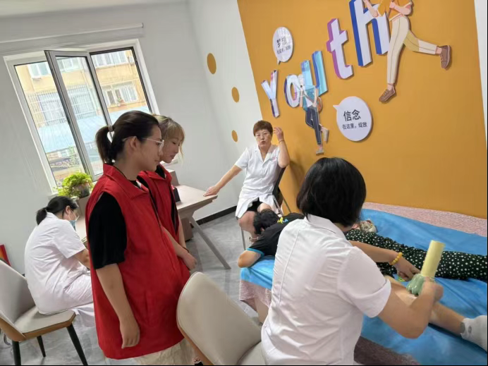 义诊台前,成员们辅助医护志人员帮助老人们进行身体检查。遇到关节不适的长辈,他们一边轻柔按摩缓解酸痛,一边讲解“夏天吹空调别直对腰颈”的护养诀窍;聊到饮食,又细细嘱咐“绿豆汤别煮太久,苦瓜焯水能去寒”,还把这些小常识写成纸条塞进老人手里,暖心的叮嘱让大家笑着说:“这关怀比三伏天的凉席还贴心!”