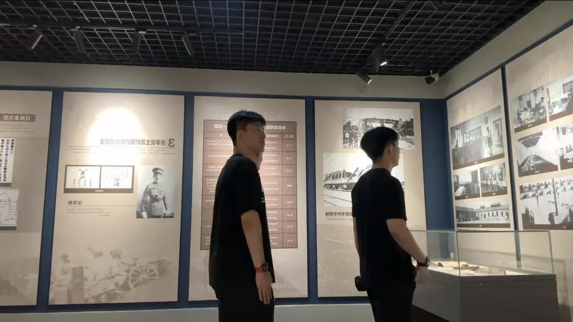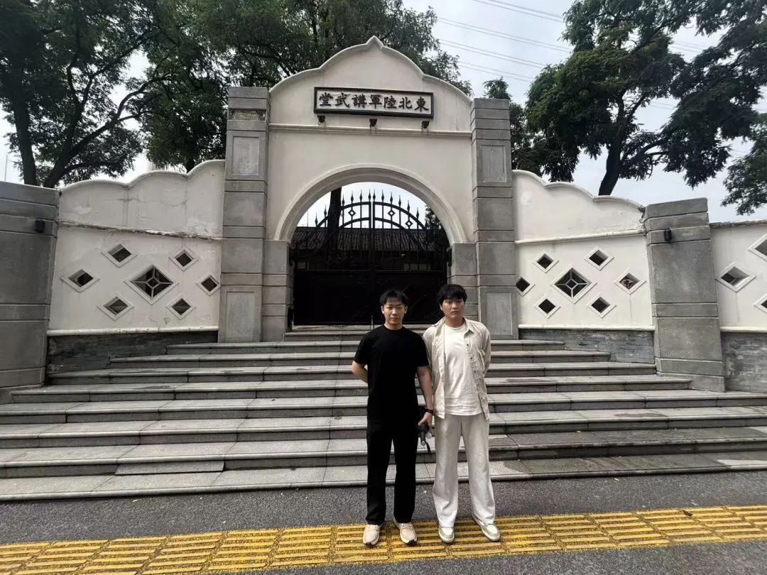 第三站,实践团同学走进东北陆军讲武堂旧址陈列馆。刚踏上石板路,大家便被这座如沉默军事史诗的建筑吸引,轻声讨论民国建筑风格。青砖灰瓦的营房、拱券门窗、坡形屋顶,线条冷峻刚硬。几位同学触摸斑驳墙壁,指尖拂过印记,似能感受时光痕迹。空旷操场仿佛有号令回响,同学们自发列队,模仿当年学员站姿。“原来军人的挺拔是这样练出来的。” 一位同学挺直腰杆感慨。这座民国将星摇篮,砖缝浸透着铁血硝烟气息,风骨穿越时空,见证烽火岁月,英雄气概未散。参观结束,实践团在旧址前合影,同学们表示,此次实践直观感受了近代军事教育历程,被先辈爱国情怀和奋斗精神感染,未来会以更昂扬姿态面对学习生活。