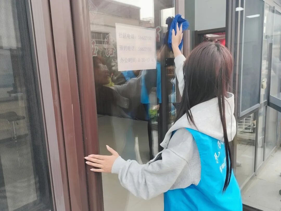 金秋的玉露社区,因“奉献、友爱、互助、进步”志愿精神而熠熠生辉。高职学子是“社区美容师”,抬手擦净窗棂尘斑,擦亮的是对邻里的贴心关怀;俯身拾起角落杂物,拾起的是对家园的责任担当。青春从不止于课堂与远方,也绽放在社区小巷的躬身服务中,浸润在脚下每一寸土地的默默守护里。一声问候贴紧砖瓦温度,一滴汗水折射志愿光芒。未来,高职学子将继续与社区并肩同行,将志愿精神融入四季日常,让秋风吹不散的热忱,成为玉露社区最柔软、最持久的温暖底色——这个金秋,因你我的志愿担当,格外明媚动人。
