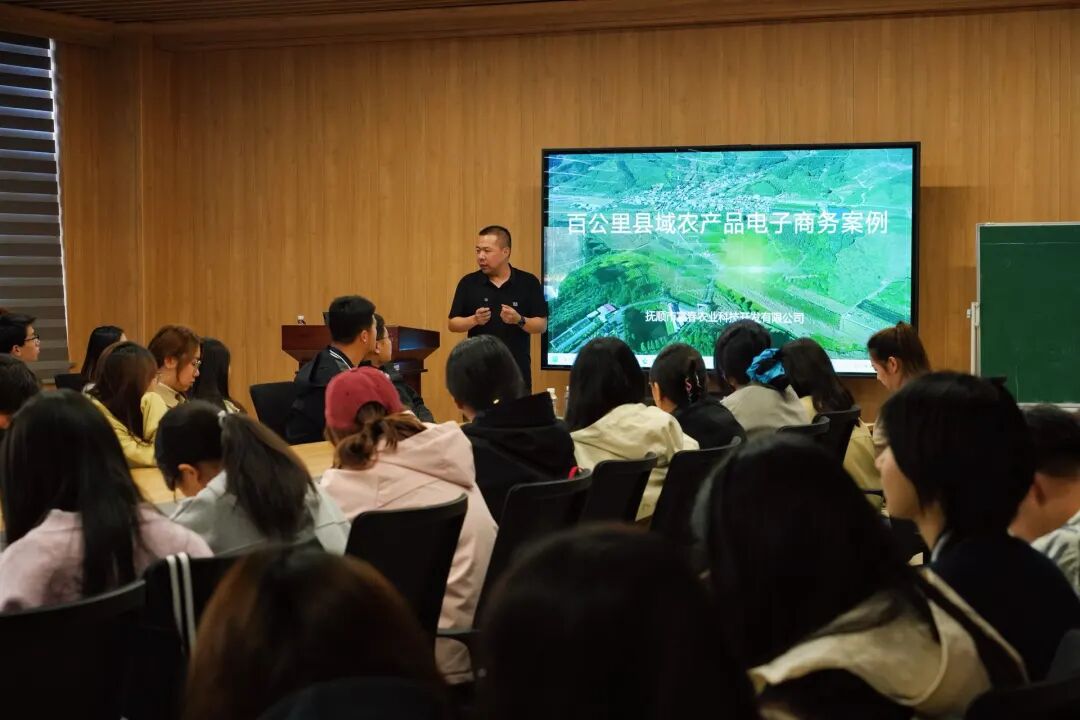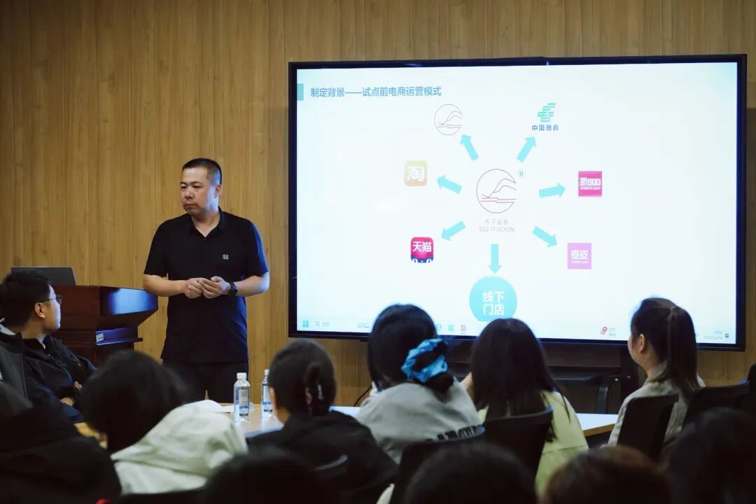 张博老师以《百公里县域农产品电子商务案例》为主题,结合抚顺市富春农业科技开发有限公司的成功实践,围绕“百公里”服务直径的县域电商模式,分享“六统一”标准化管理经验,为学生提供了县域电子商务领域的实战经验与系统性指导。