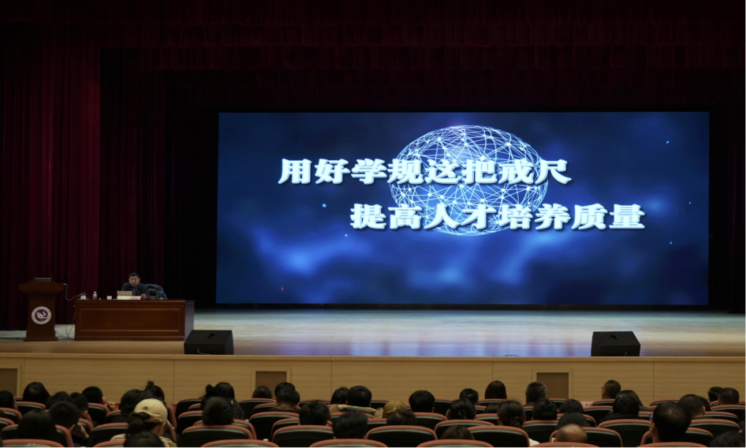 报告会上,解汉林研究员围绕“立德树人提高素质”“坚持学规管理育人”“完善机制保障权利”三个维度,对《普通高等学校学生管理规定》(中华人民共和国教育部令第41号)作了系统深入的解读。他结合学籍管理、奖励处分、学生申诉等师生关注的热点问题,通过典型案例展开精准剖析,重点阐释了如何将刚性制度与柔性引导相结合,推动规章制度落地见效,切实转化为育人实效,为学生管理工作提供了既有理论高度又具实践温度的指导。