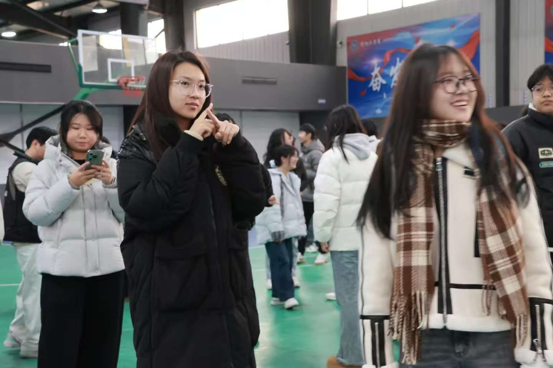 随后开展的趣味游戏将现场氛围推向一个个高潮。“无声传递”环节,队员们凭借肢体语言传递词语,默契的配合与有趣的误差引得笑声不断;“摞杯子”游戏中,大家通过绳索协作控制皮筋套叠杯子,精准的操作体现出团队的紧密配合;最后的“说数报团”更是在欢声笑语中拉近了彼此距离,随着裁判报出数字,同学们迅速反应、结队成团,现场气氛热烈非凡。
