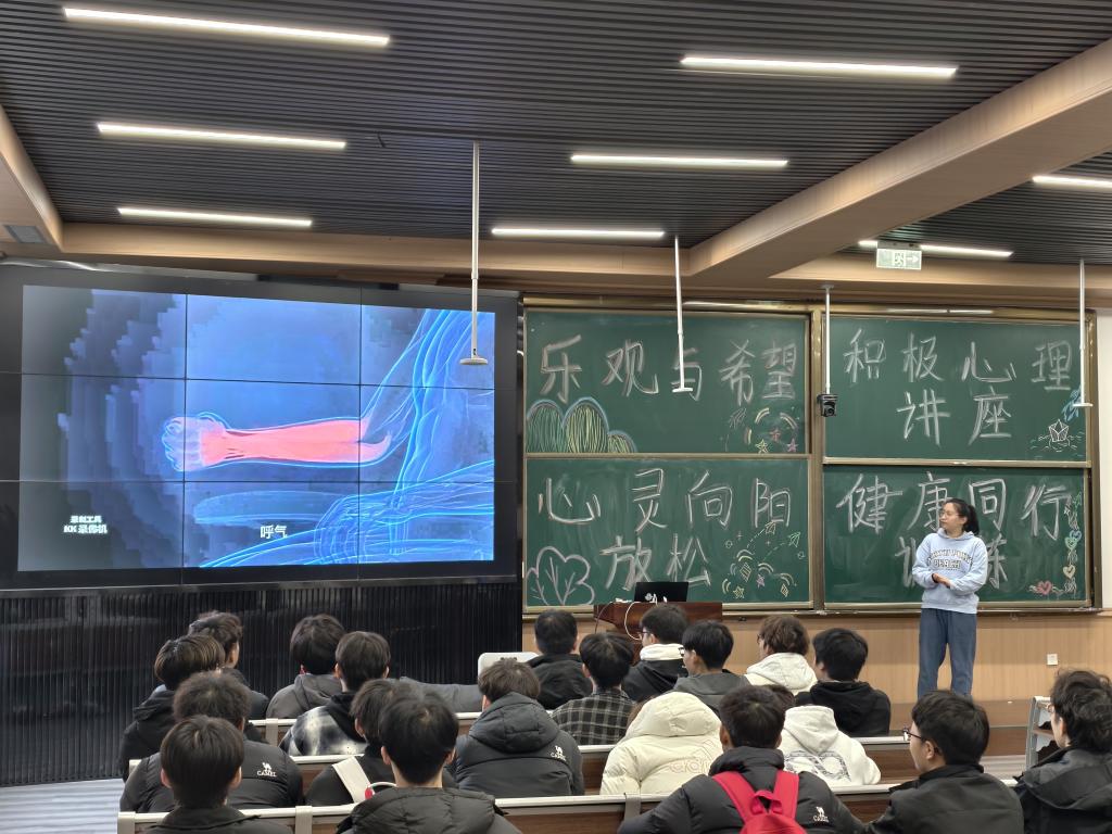 为扎实推进校园心理健康教育工作,帮助广大学生缓解学业压力、培育积极心理品质,筑牢心理健康防护屏障,11 月 11 日,大学生心理咨询与发展中心郭思含老师在机械与工程学院102 教室举办了主题为“心灵向阳,健康同行”的乐观与希望积极心理学讲座及放松团体训练,机械与工程学院50余名学生参与其中。