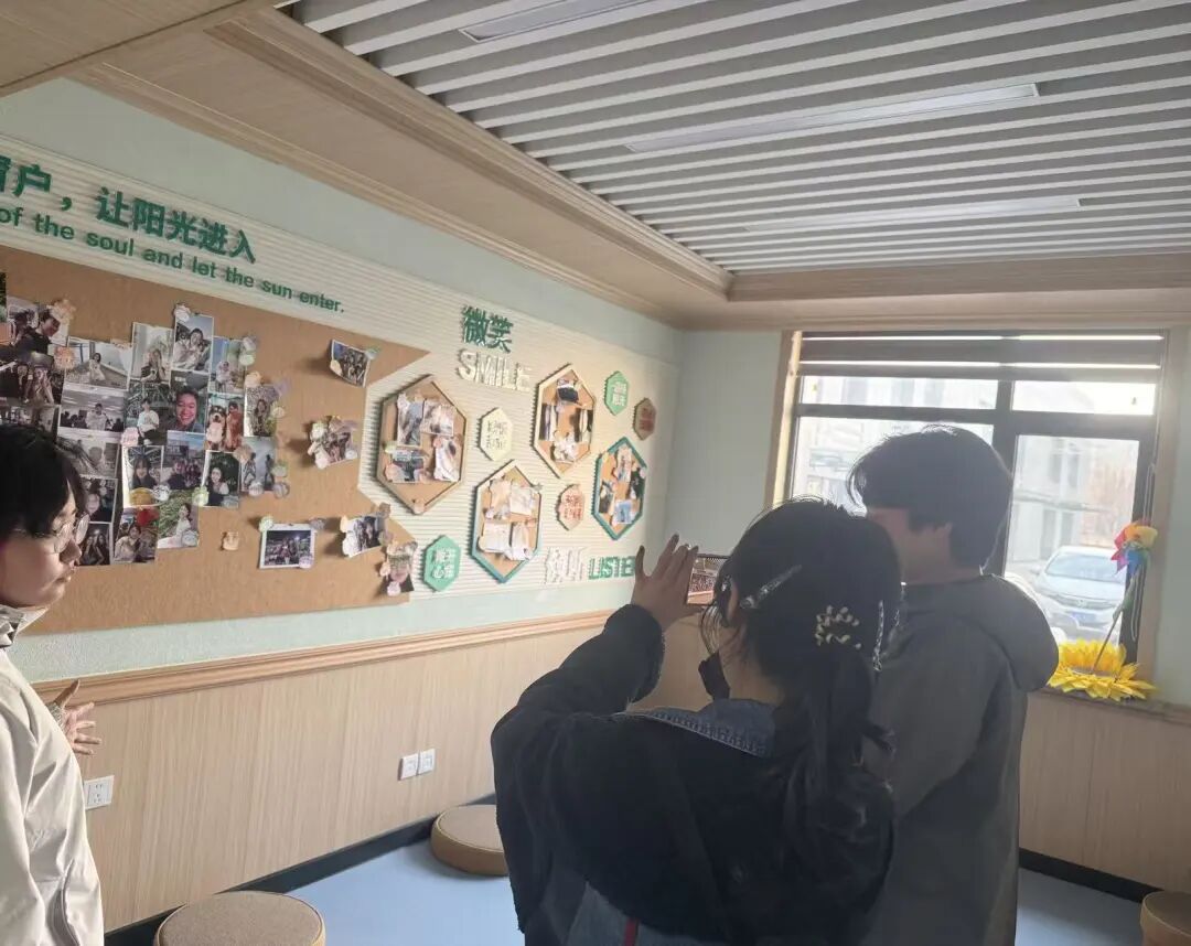 本次心理开放周打造了多元沉浸式心理体验场景,处处洋溢着治愈与温馨的气息。活动现场精心设置主题打卡墙,成为校园里温暖的心灵阵地,墙面承载着温暖治愈的心理寄语,传递着善待自我、拥抱美好的积极理念,同学们驻足停留,在打卡墙前感受心灵慰藉,定格青春积极模样,以轻松治愈的方式走进心理健康。校园内还设置了趣味互动打卡点位,学子们以青春新潮的方式为心理健康打call,通过轻松有趣的互动传递积极心态,在校园中营造出关注心理、关爱自我的温暖氛围。在这里,没有指责与评判,只有耐心的倾听与陪伴;没有心灵的隔阂,只有温暖的相拥。